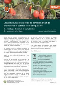 Les décideurs ont le devoir de comprendre et de promouvoir le partage juste et équitable des avantages decoulant de leur utilisation des ressources génétiques