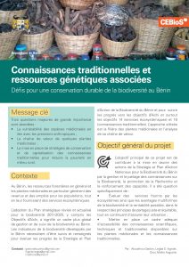 Connaissances traditionnelles et ressources génétiques associées Défis pour une conservation durable de la biodiversité au Bénin